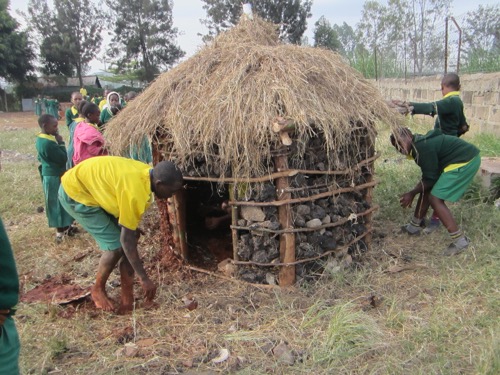 During the consultation discussions, Duncan, a social studies teacher at the primary school, shared his idea to build a Kenyan “village” – a series of huts in various building styles, representing the major people groups throughout the country. During the build, Duncan and his students constructed the first hut of the series. He envisions the “village” to be a space where students can engage in hands-on learning about the diversity of local traditions in Kenya.